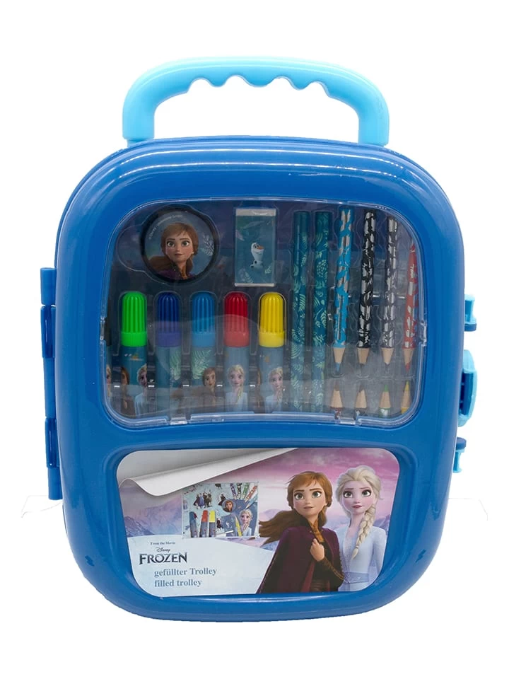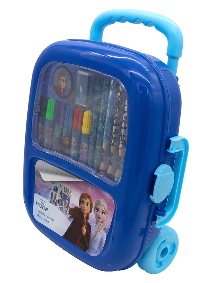 – Inhalt: kleiner Trolley mit Teleskopstange, 6 Fasermaler, 8 Mini Buntstifte, 2 Bleistifte, Radierer, Spitzer, Stickerblatt A5, Malblock