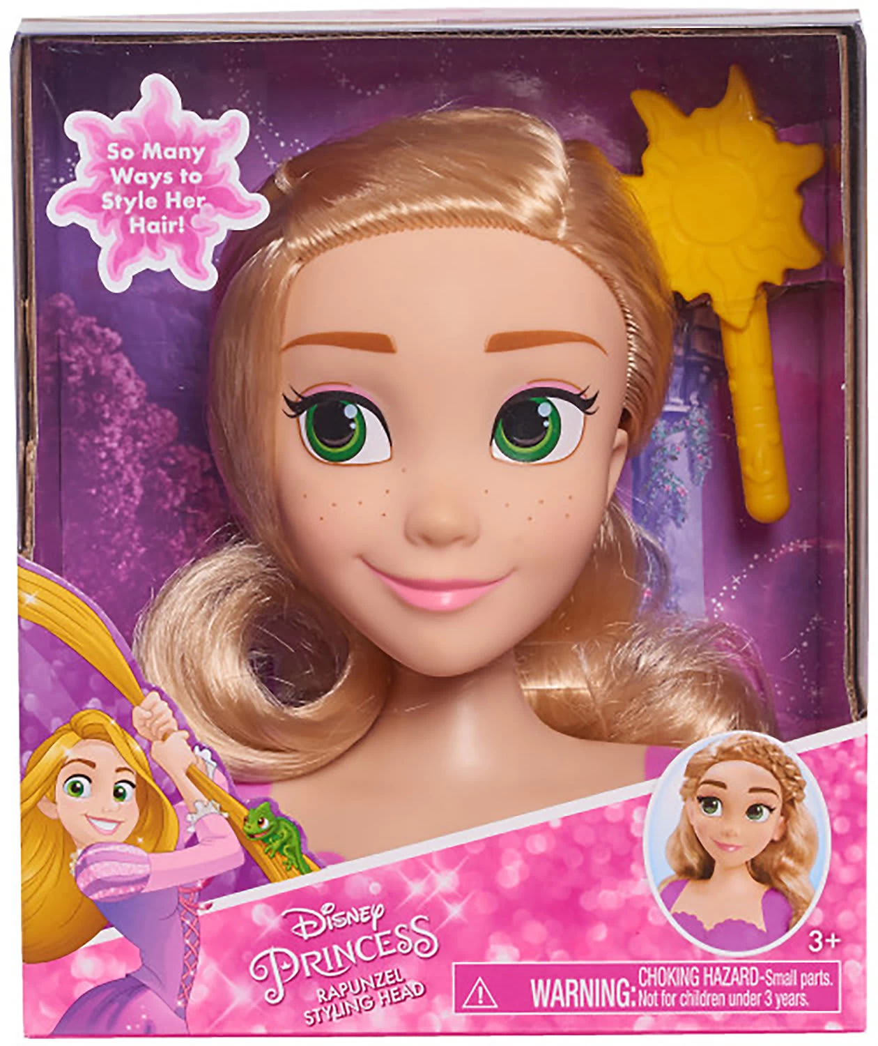 Das Stylen des Disney Princess Rapunzel Mini Styling Head macht großen Spaß! Die wundervollen langen Haare der kleinen Prinzessin können hochgesteckt, geflochten oder offen gestylt werden. In dem Set enthalten ist eine Bürste – so können die Frisurenideen der Nachwuchsstylist*innen gleich umgesetzt werden.