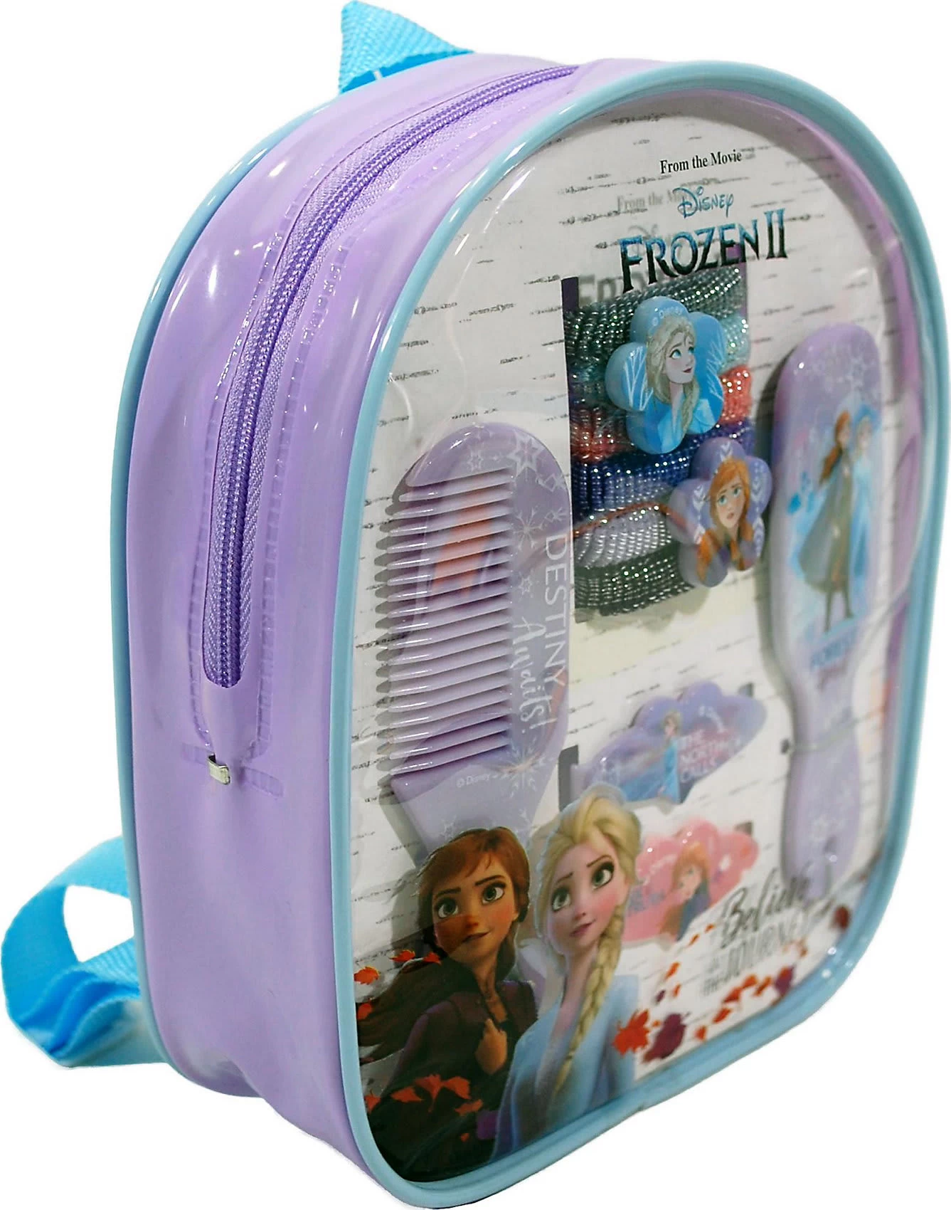 Dieses schöne Haarschmuckset kommt in einem praktischen Rucksack und kann daher überall mitgenommen werden. Der Rucksack ist von beiden Seiten transparent und mit einem Reißverschluss ausgestattet. Im Rucksack befinden sich unter anderem ein Kamm, ein Spiegel, verschiedene Haargummis und Spangen. So kann man den Schmuck ganz leicht überall hin mitnehmen.